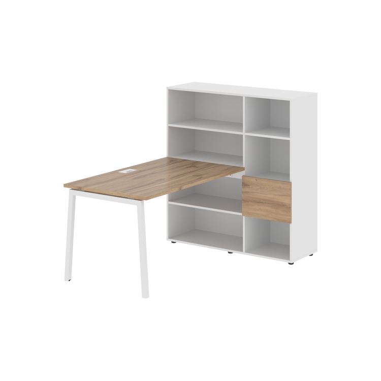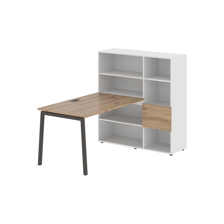 Столешница глубиной 800 мм, комплектуется регулируемой опорой L-образной формы из профиля трубы 40х40, комплектом телескопических траверс и двумя кронштейнами для крепления к стеллажу.