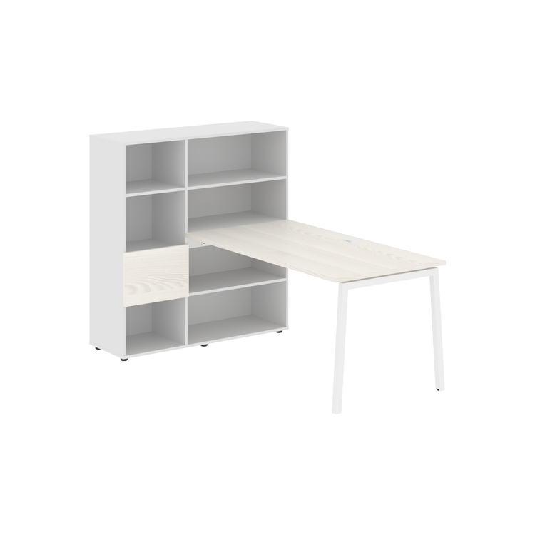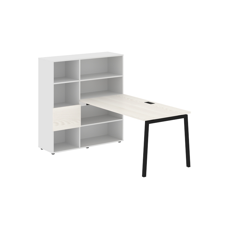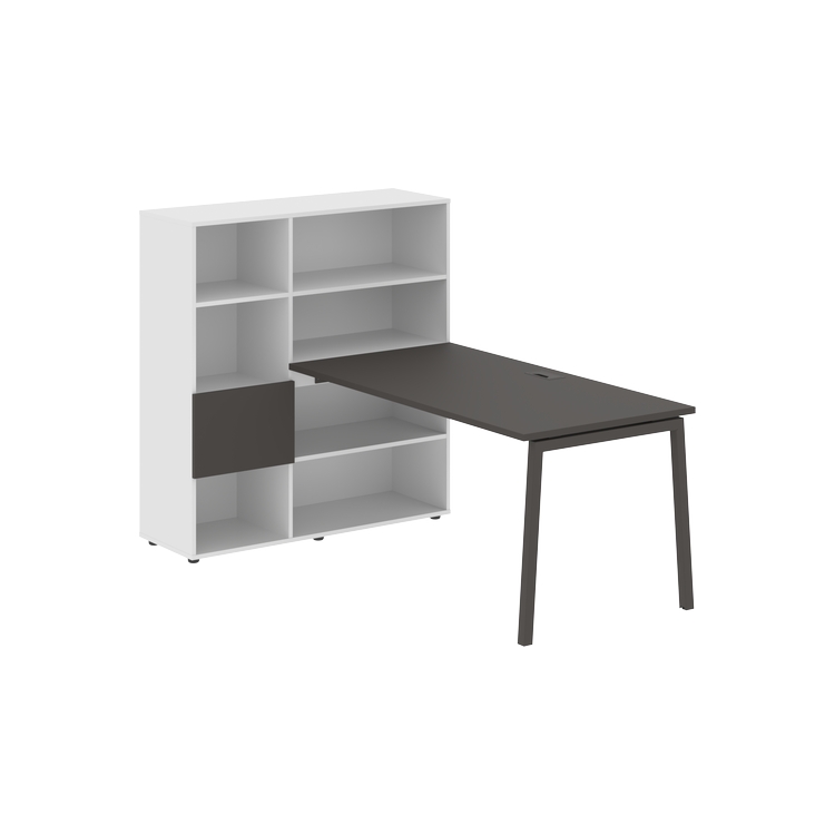 Столешница глубиной 800 мм, комплектуется регулируемой опорой L-образной формы из профиля трубы 40х40, комплектом телескопических траверс и двумя кронштейнами для крепления к стеллажу.
