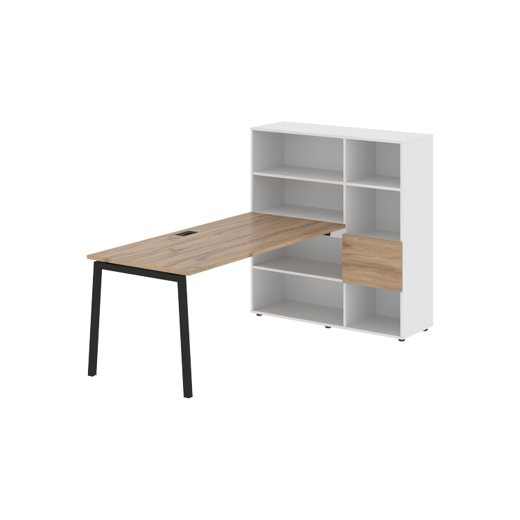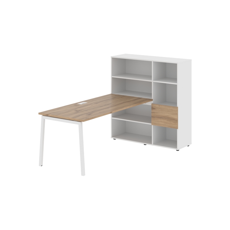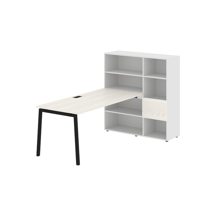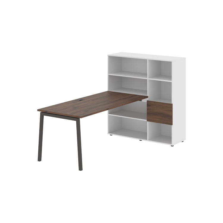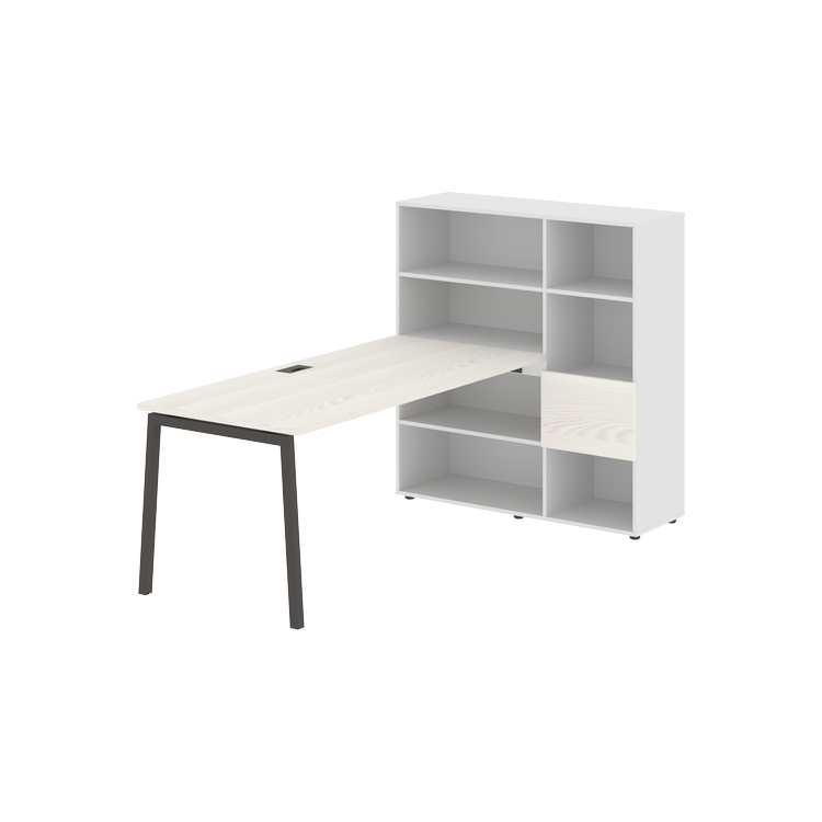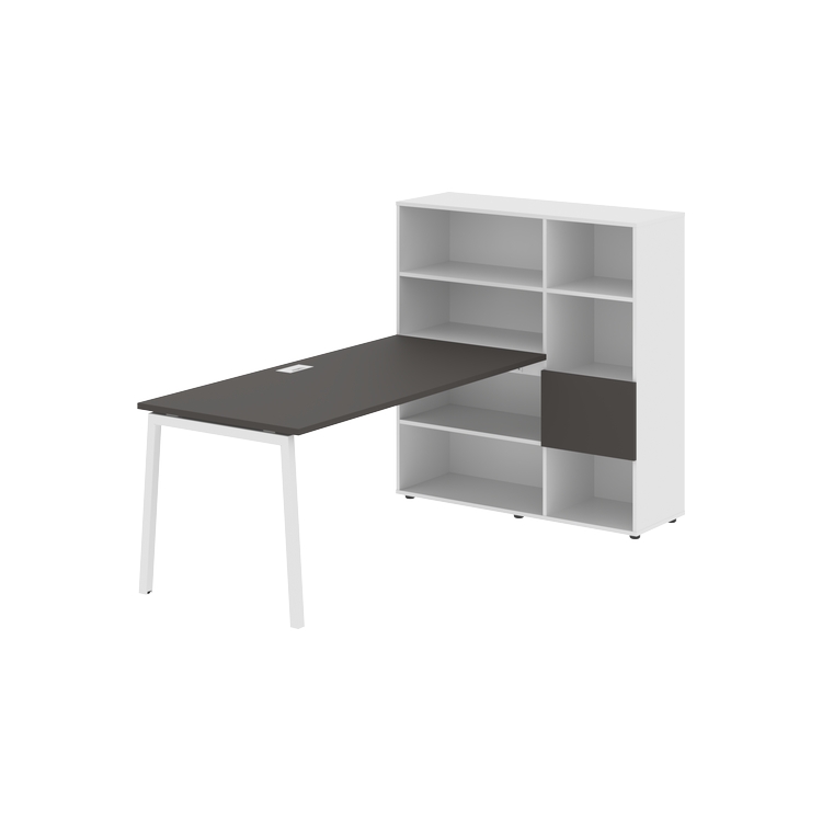 Столешница глубиной 800 мм, комплектуется регулируемой опорой L-образной формы из профиля трубы 40х40, комплектом телескопических траверс и двумя кронштейнами для крепления к стеллажу.