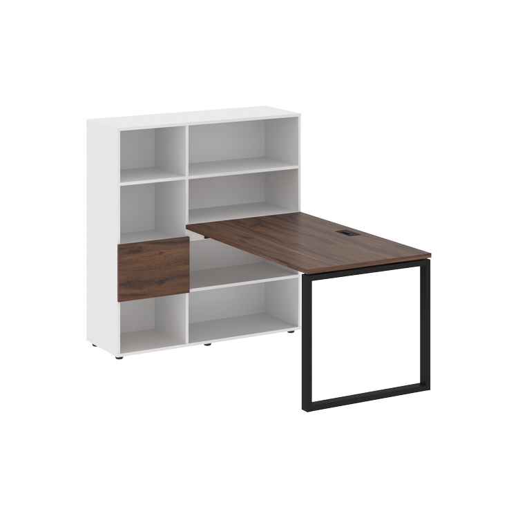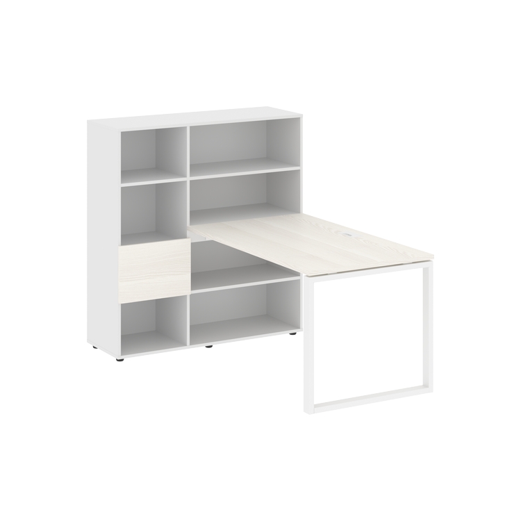 Каркасы стеллажей полностью из ЛДСП т.18 мм с кромками ПВХ т.2 и 0,45 мм, задняя стенка из ЛДСП. Комплектуется малой дверью в цвет столешницы и регулируемыми опорами h= 27 мм.