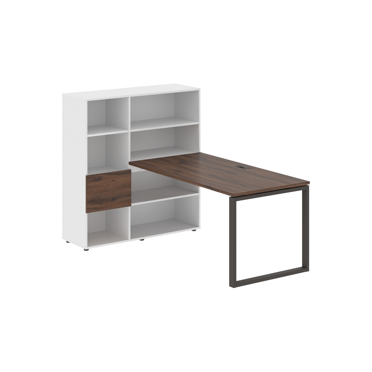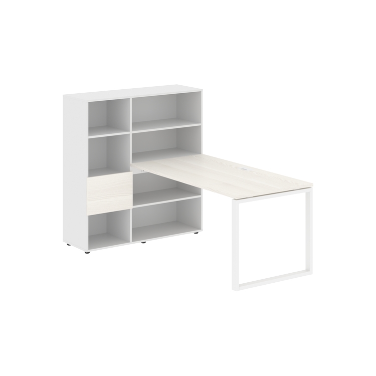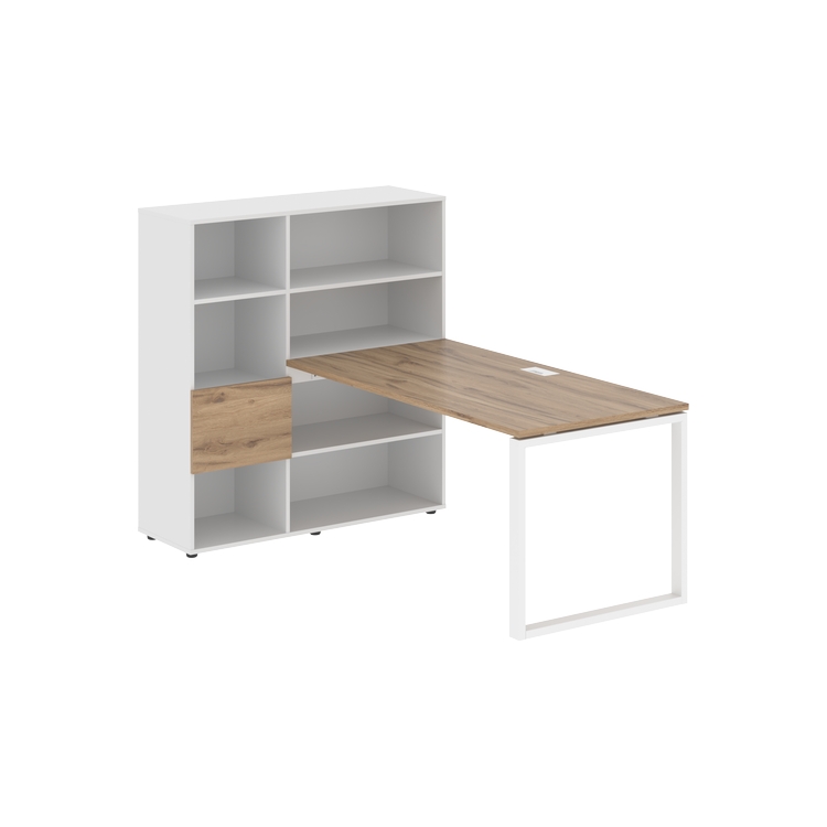 Каркасы стеллажей полностью из ЛДСП т.18 мм с кромками ПВХ т.2 и 0,45 мм, задняя стенка из ЛДСП. Комплектуется малой дверью в цвет столешницы и регулируемыми опорами h= 27 мм.
