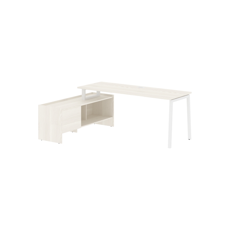 Столешница глубиной 670мм из ЛДСП т.25 мм с кромками ПВХ по периметру т.2 мм. Комплектуется металлическим кабель-каналом габаритом 160х80х25 мм.
