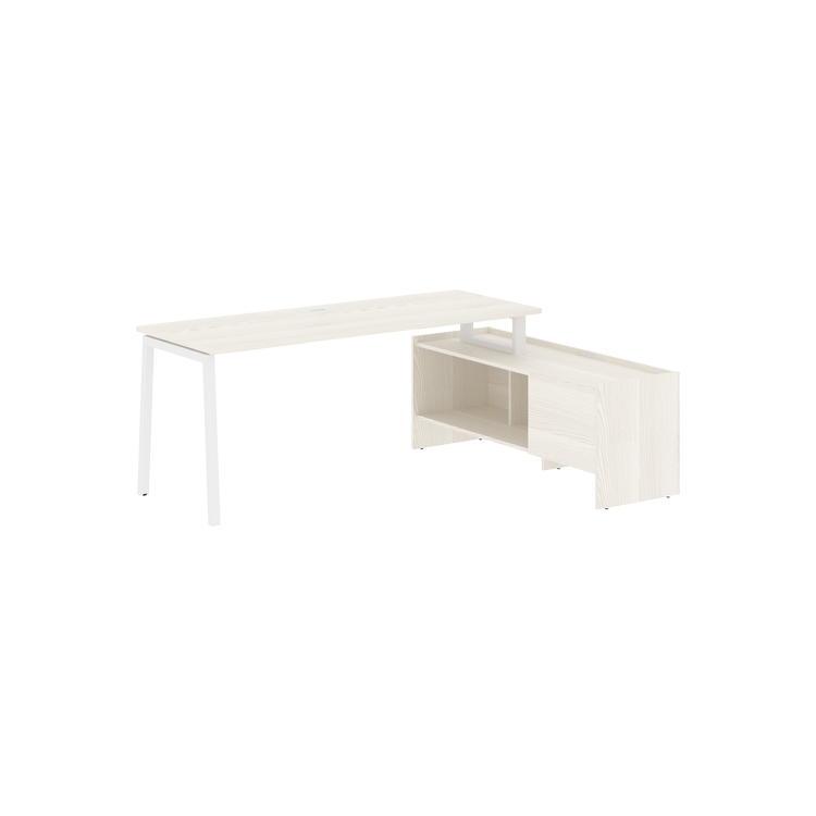 Столешница глубиной 670мм из ЛДСП т.25 мм с кромками ПВХ по периметру т.2 мм. Комплектуется металлическим кабель-каналом габаритом 160х80х25 мм.