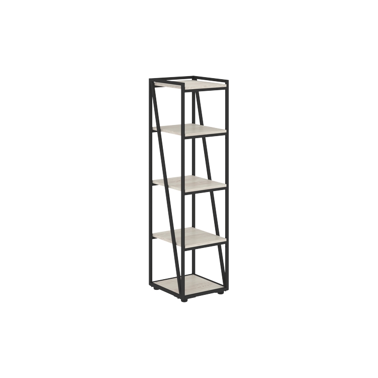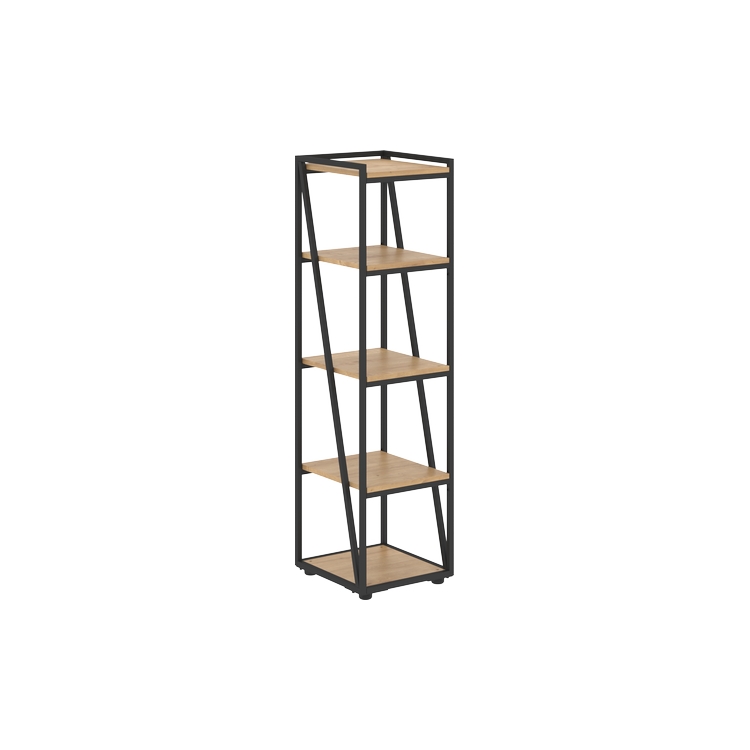 Стеллаж узкий открытый из профиля трубы 20х20мм, черного цвета. Комплектуется регулируемыми опорами и полками из ЛДСП т.18мм с кромками ABS т.0,45мм. Полки в каркасах с возможностью переустановки.