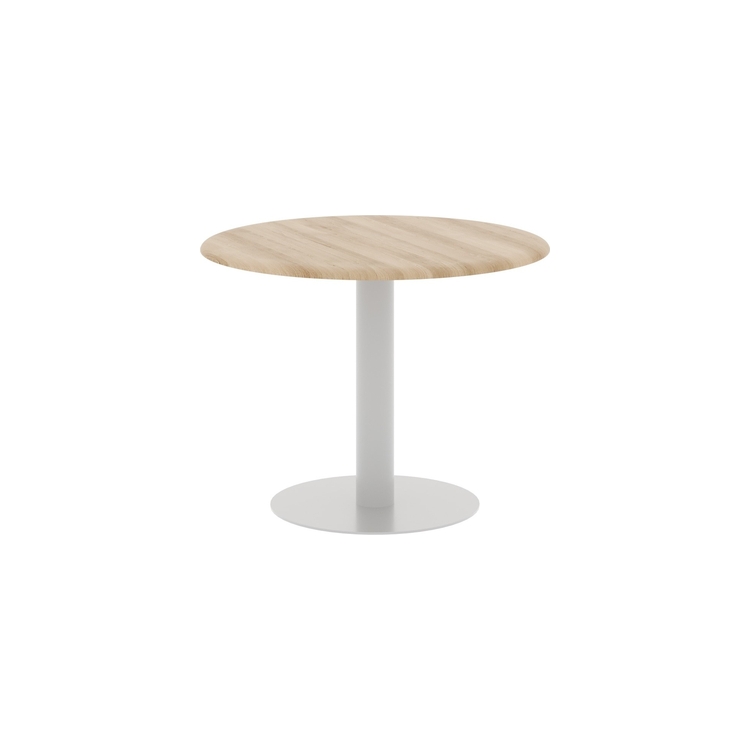 Столешница выполнена из МДФ т.19мм с фрезеровкой, покрытие - пленка ПВХ. Опора металлическая с круглым основанием, диаметр трубы 108мм , диаметр основания 600мм. Опора нерегулируемая, цвет - Белый, Антрацит, Алюминий