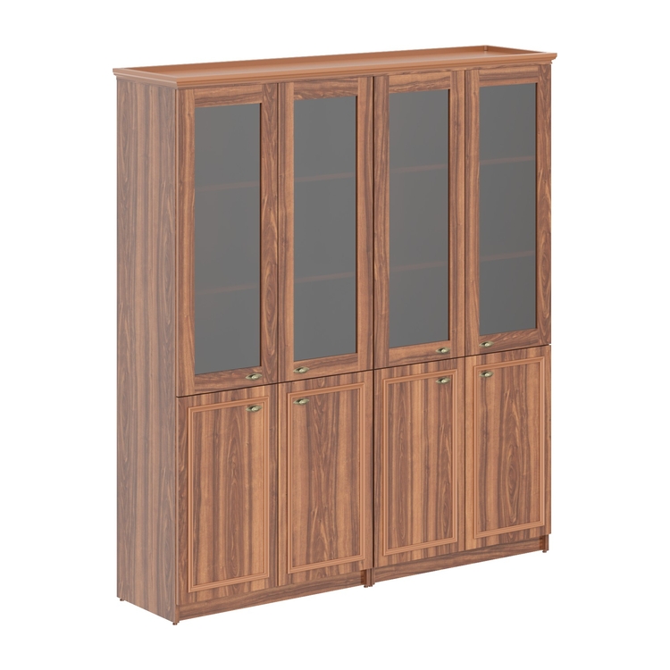 Коллекция изготовлена с учетом всех особенностей классической мебели – теплые тона натурального дерева, карнизы, профильные рамки, накладной орнамент, ручки, стилизованные «под бронзу».
