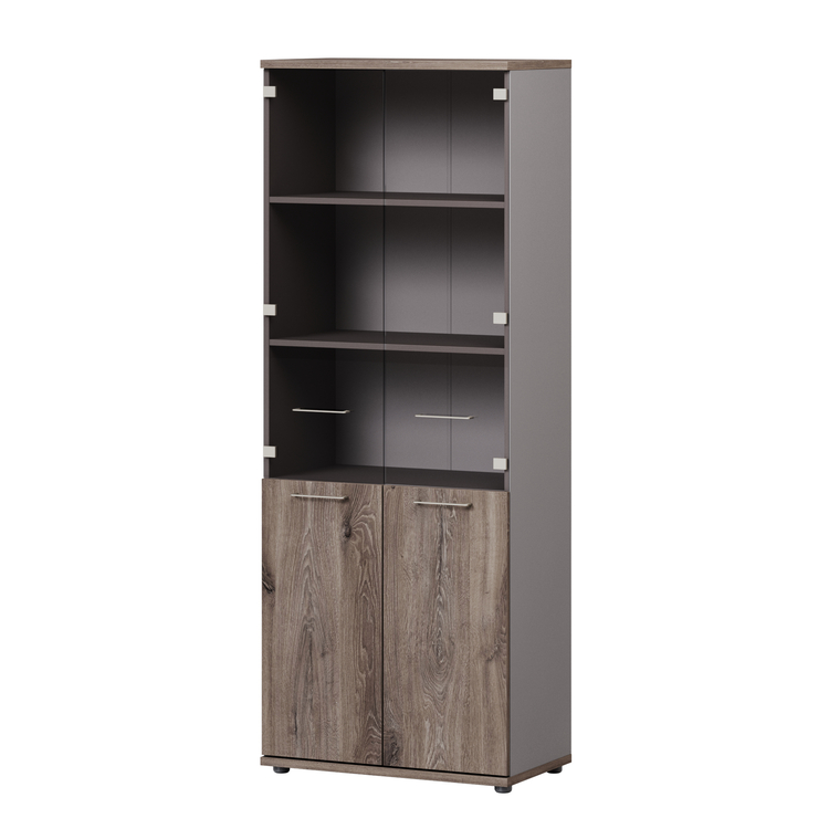 Шкаф на основе стеллажа B-67 + B-010 Двери низкие 794х18х798 + B-022 Двери средние стеклянные 794х4х1214.