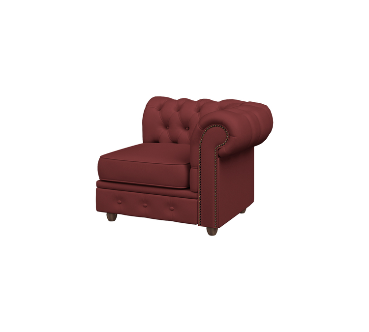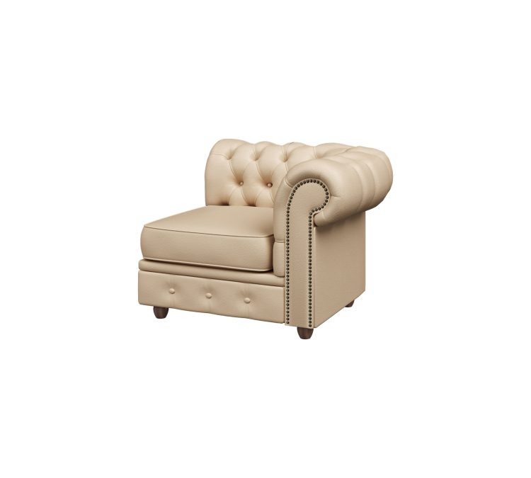 Модуль с левым подлокотником ЧЕСТЕР-ЛЮКС используется для завершения угловых мебельных композиций. В итоге они сочетают в себе все преимущества коллекции: каретную стяжку, которая ассоциируется с роскошью и изысканностью, удобные глубокие сиденья, фигурные опоры из натурального дерева, которые прекрасно дополняют роскошные формы комплекта.